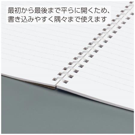 ●コクヨ独自開発の“新感覚やわらかリング”を採用したリングノートです。●平らに開くので書き込みやすい、平らに折り返せるので狭い場所でも心地よく使える、といったリングノートのよさはそのままに、書くときリングに手が当たっても気にせず端まで美しく書ける、これからの新定番ノートです。●リング形状が“Dの字型”になっているので、リング幅がコンパクトでリングノート特有のかさばり感がありません。●ノートの枚数はたっぷり書ける80枚です。●必要なページだけをきれいに切り離せる、マイクロミシン目入りのカットオフタイプです。●「美しく書く」をサポートするドット入り罫線を採用しました。●中紙/上質紙●表紙/表:色透明PP、裏:板紙●リング/オレフィン系樹脂◆表紙色DM・・・ダークグレー、LB・・・ライトブルー、LG・・・ライトグリーン、LP・・・ライトピンク、V・・・紫、YR・・・オレンジ●サイズ:3号(A5)