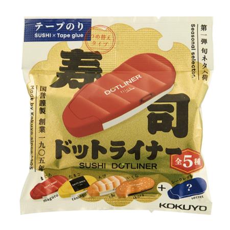 ●寿司デザインが施された特別なドットライナーです。●5柄各1個(うち1柄はシークレットデザイン)のコンプリートセット●中には醤油色のリフィルが入っています。●ペンケースにスッキリ入るコンパクトサイズ。●独自機構搭載でペンケースの中でキャップが開かず持ち運びに最適。●フルカバータイプなのでホコリを防ぎのり面が汚れにくい。●キャップが横に開くのでのりを引く位置が見やすい。●経済的で環境に配慮したつめ替えタイプ●のりの糸引きがなく、紙がシワになりにくいのできれいな仕上り。※のり面は茶色(醤油色)です。●補足:ACID FREE