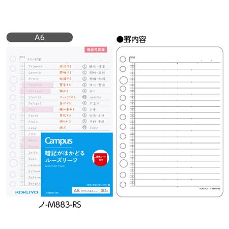 ●隙間時間にサッと勉強できる便利なキャンパスミニルーズリーフシリーズ●暗記勉強に使いやすいA6サイズのルーズリーフです●自由度が高いドット入り罫線で、記入欄の分割数を変えれるため、教科や内容に合わせて使い分けができます●左端にある2つのチェックボックスを活用して暗記できたかどうか確認することができます●暗記勉強に便利な赤色シートが1枚付いています●別売の「キャンパス ノートのように使えるバインダーA6サイズ」に赤色シートと一緒にセットすることで、持ち運びしやすく見たいときにサッと見ることができます●別売の「キャンパス ルーズリーフのためのふせん」を使うことで、移動中も簡単にマークすることができます●サイズ:A6