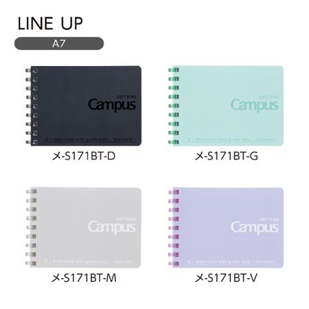 ●コクヨ独自開発の“新感覚やわらかリング”を採用したリングノートです。●折り返せるので狭い場所でも書きやすく見返しやすい、といったリングノートのよさはそのままに、書くときリングに手が当たっても気にせず端まで美しく書ける、これからの新定番ノートです。●リング形状が“Dの字型”になっているので、リング幅がコンパクトでリングノート特有のかさばり感がありません。●リングに色がついているので、色ごとに用途や教科分けした際、背で見分けることができます。●きれいに切り離せる、マイクロミシン目入りのカットオフタイプです●「美しく書く」をサポートするドット入り罫線を採用しました。●サイズ:A7