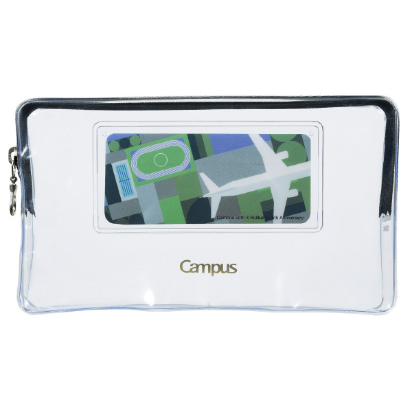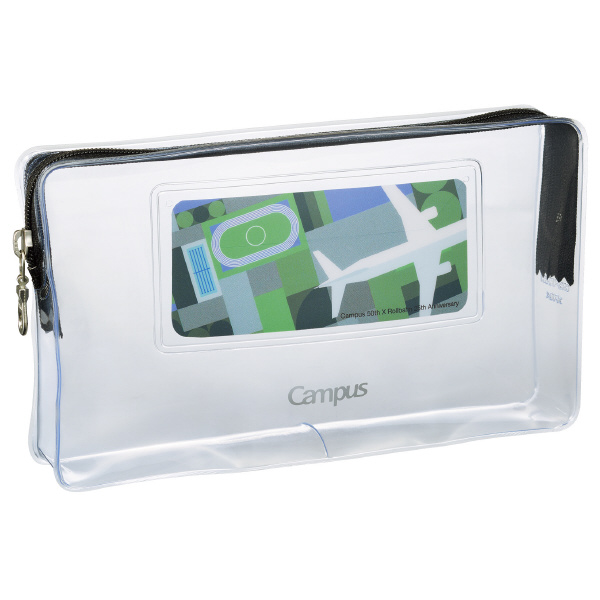 ●日本で広く親しまれる2つのノートブランド、CampusとRollbahn。ライバル同士でもある両ブランドが、周年を記念し遂に禁断のコラボレーションが実現。お互いを尊重しあって生まれた、特別なデザインの限定アイテムを展開します。●ブランド名のコンセプト(Campus→学校・校舎、Rollbahn→滑走路、飛行機)をモチーフにした限定デザイン。●測量野帳がぴったり入るサイズ。●約30本のペンを収容できるサイズ。●マチ付きなのでたっぷり収容できます。●ファスナー付きなので、小物などもしっかり収容できます。●透明なので中身が見えて便利です。●材質:本体/PVC-P(t0.3)、カード/PP(t0.2)