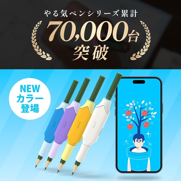 ●「しゅくだいやる気ペン」は、スマートフォンのアプリと連動して、子どもの日々の努力を「見える化」することで、勉強への意欲を高めていくために開発された商品です。●センサー付きアタッチメントを鉛筆に取り付け、ペンを動かした時間に応じて溜まった「やる気パワー」をスマホアプリに取り込んで可視化します。●楽しい親子のコミュニケーションのきっかけをつくることで、家庭学習の習慣化をサポートします。●お子さまの好みに合わせて選べるカラーバージョンで、より愛着を持って学習に取り組めます。\n●iOS11 以上。●Android 7.0以上。●本品は内蔵型充電式電池を採用しております。●国内で一般に販売されている六角形の鉛筆で、面対面の太さが7~8mmのものを目安としてお選びください。●鉛筆は同梱されておりません。
