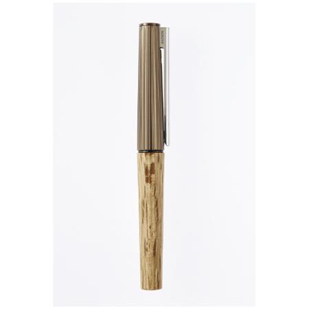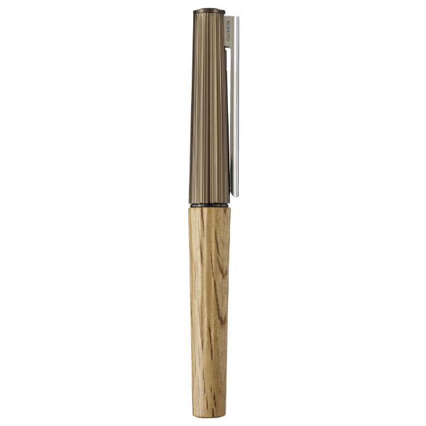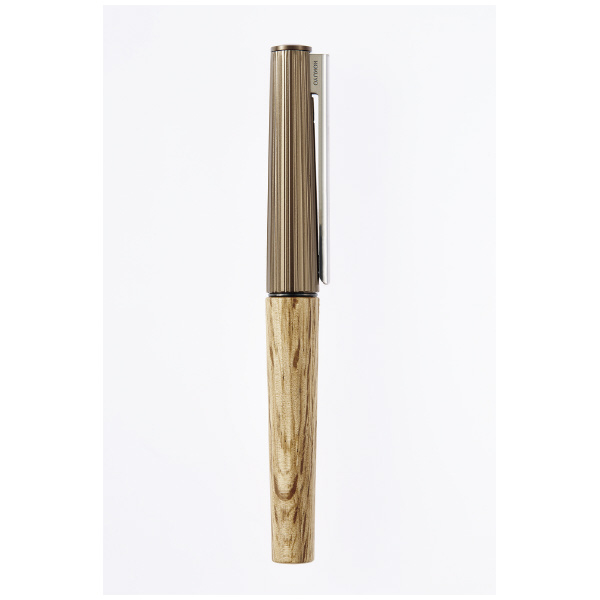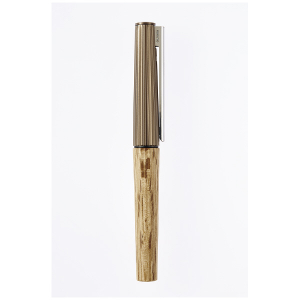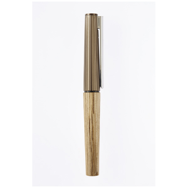 ●自然の不揃いな美しさと手仕事の温かみを感じさせるデザインに仕上げました。キャップには、樹木の表皮を思わせる細い溝をランダムな間隔で彫刻し、胴軸には、手加工の工芸品のような不揃いな切削痕をプログラムで再現し、時間をかけて削り出しています。