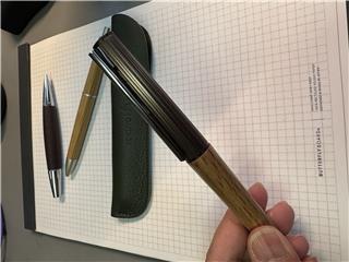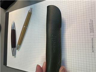 ●材質/キャップ:アルミニウム、胴軸:木(イチイガシ)、ペン先:真鍮 (Crメッキ)、クリップ:鉄(Crメッキ)、ペンシース:本革