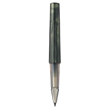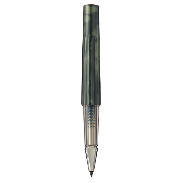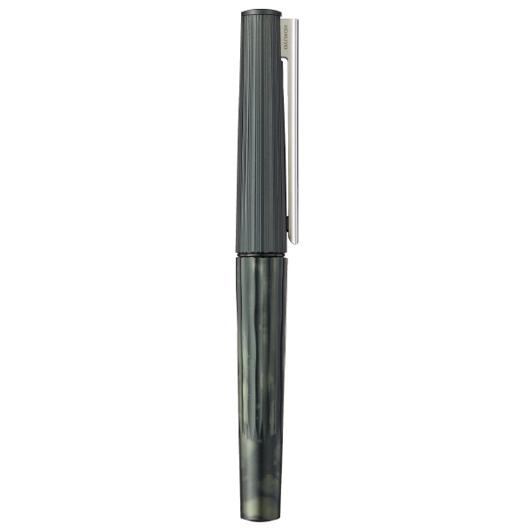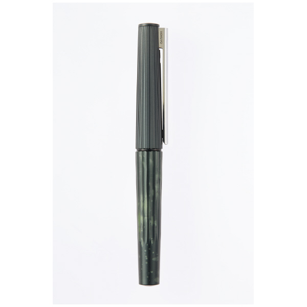 ●特殊なアルマイト加工を施すことで、胴軸には1本1本異なる表情のマーブル模様が浮かび上がります。●金属製ではあるものの、自然の不揃いな美しさと手仕事の温かみを感じさせるデザインに仕上げました。キャップには、樹木の表皮を思わせる細い溝をランダムな間隔で彫刻し、胴軸には、手加工の工芸品のような不揃いな切削痕をプログラムで再現し、時間をかけて削り出しています。●2025年のLimited edition・金属軸は、2000本の限定生産となります。1本1本の胴軸の内側に、シリアルナンバーを刻印してお届けいたします。※重量バランスを保つため、キャップはペン後端に取り付けできません。●材質/キャップ・胴軸:アルミニウム、ペン先:真鍮 (Crメッキ)、クリップ:鉄(Crメッキ)、ペンシース:本革●外寸法(軸径・長さ):軸径φ15×長さ140